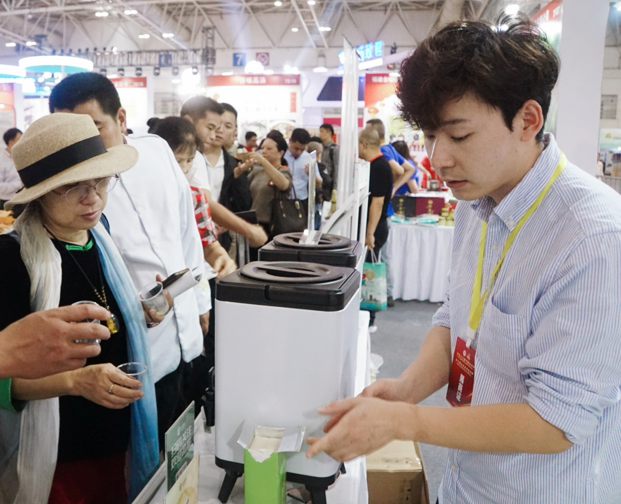除此之外,现场工作人员还热情邀请对产品感兴趣的客户品尝试吃。美味可口的试吃品引起了大家的注意,众人纷纷竖起大拇指,对其口感给予了高度评价。随后,他们莅临展台详细了解了产品的种类、特点和优势。